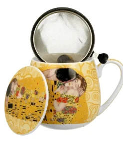 TISANERA (TAZA CON FILTRO Y TAPA) 430 ML. KLIMT KISS OCRE «DUO»