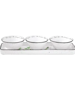 Set aperitivo porcelana 37×10 cm con 3 cuencos Ø 10 cm HERBARIUM «Easy Life»