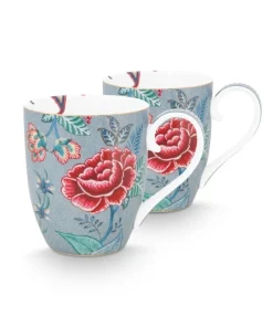 SET 2 TAZAS XL 450 ML. FLOWER FESTIVAL AZUL CLARO «PIP STUDIO»