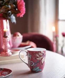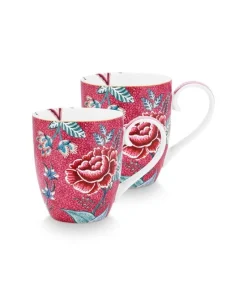 SET 2 TAZAS XL 450 ML. FLOWER FESTIVAL ROSA OSCURO «PIP STUDIO»