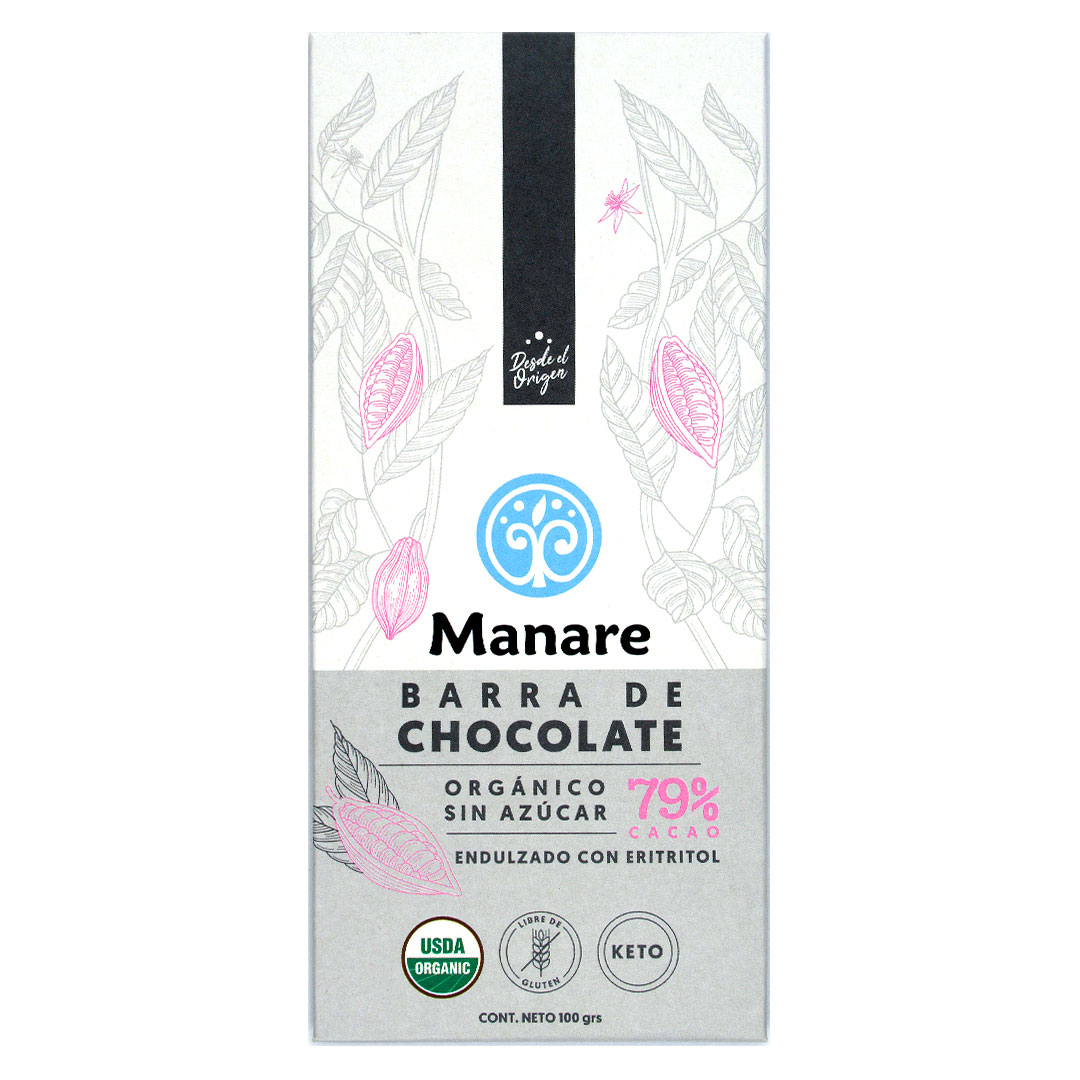 Ingredientes: pasta de cacao, eritritol, manteca de cacao, inulina, lecitina de girasol. Ingredientes provenientes de agricultura orgánica.