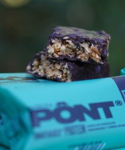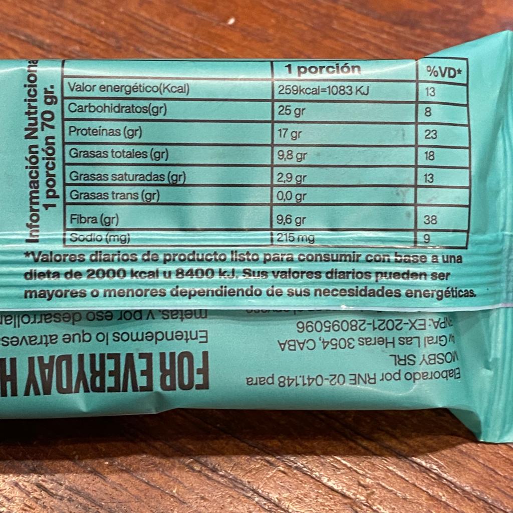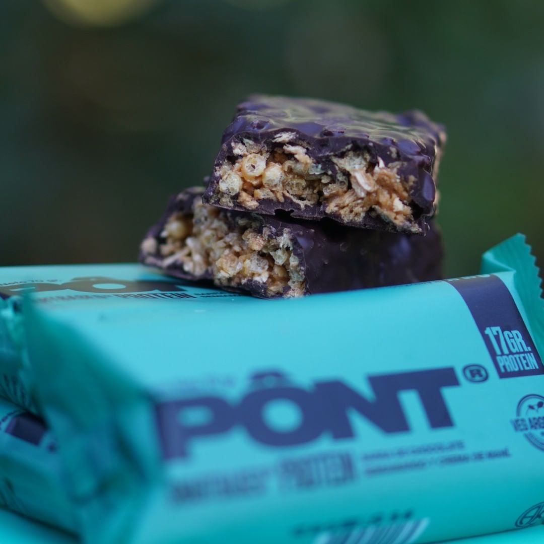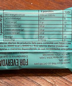 INGREDIENTES: Cobertura de chocolate seriamargo. mosto concentrado de uva. proteína de soja, mantequilia de mani, inulina, arveja texturizada, Crispin de arroz, leucina, cúrcuma, sal.