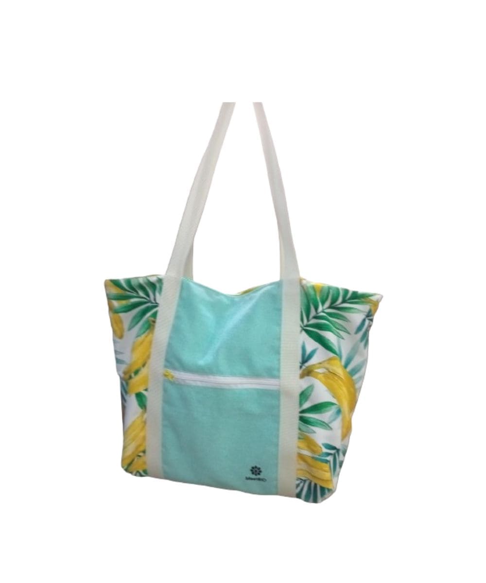 Confeccionado artesanalmente con loneta con motivos tropicales, con forro de algodón y con telas que proceden de otros proyectos, a las cuales se le está dando una segunda vida.