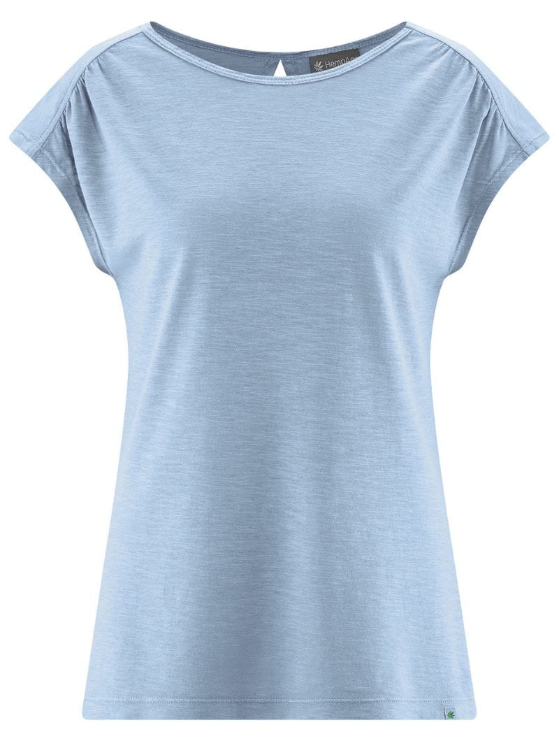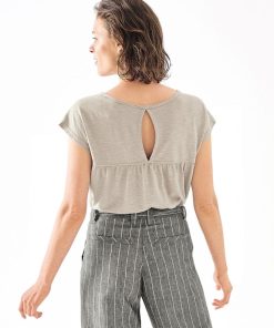 Camiseta sin mangas con fruncido en hombros y escote lágrima en la espalda.