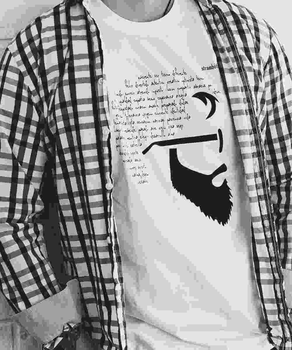 Camiseta ecológica Strambótica blanca con diseño en negro asociado a estilos de vida alternativos.
