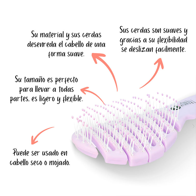 - Cerdas flexibles: Las cerdas del cepillo se adaptan a la forma del cabello, brindando un peinado efectivo sin tirones ni dolor al desenredar.
