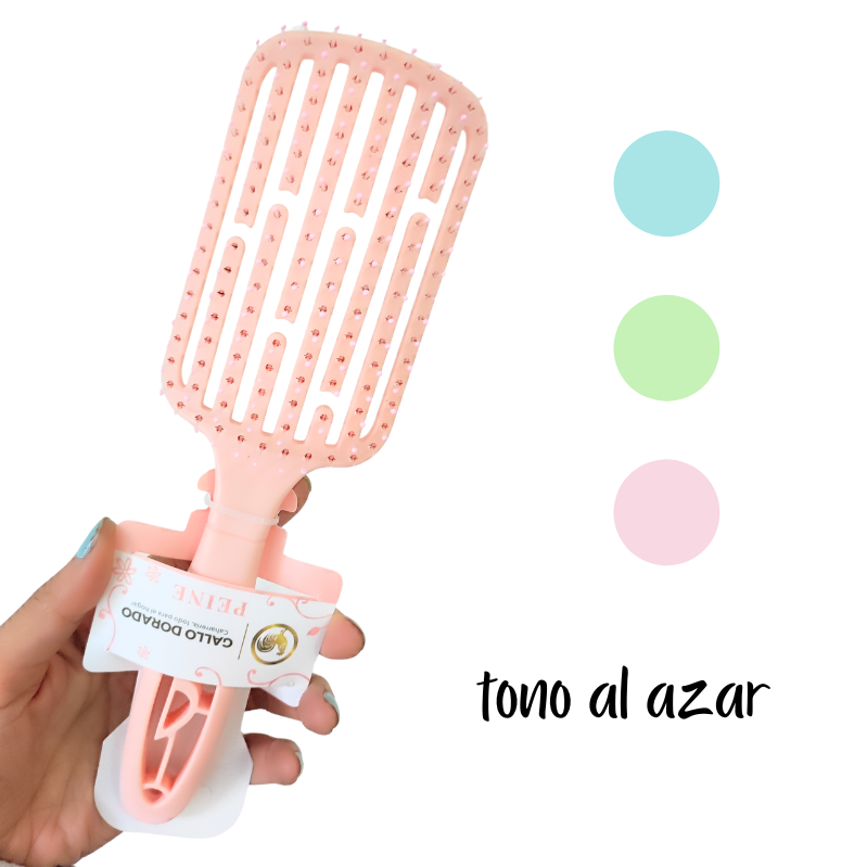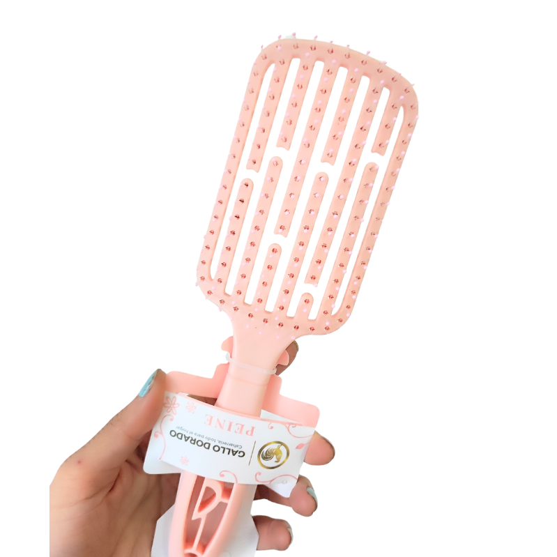 Este cepillo con diseño ergonómico, esta diseñado para desenredar tu cabello sin dolor. Tiene un mango curvado y cerdas en forma de cono que trabajan para suavizar el cabello y darle vida a tus ondas