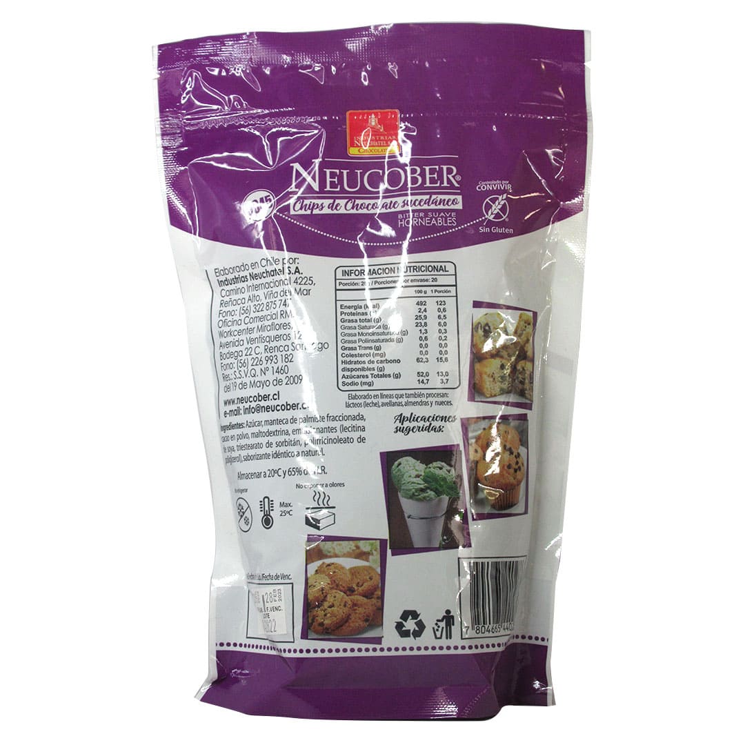 Este chips horneable de chocolate sucedáneo bitter de 6 mm de diámetro está desarrollado para soportar altas temperaturas sin perder su forma, especial para repostería de alto consumo como tortas, galletas, helados, queques y postres en general.