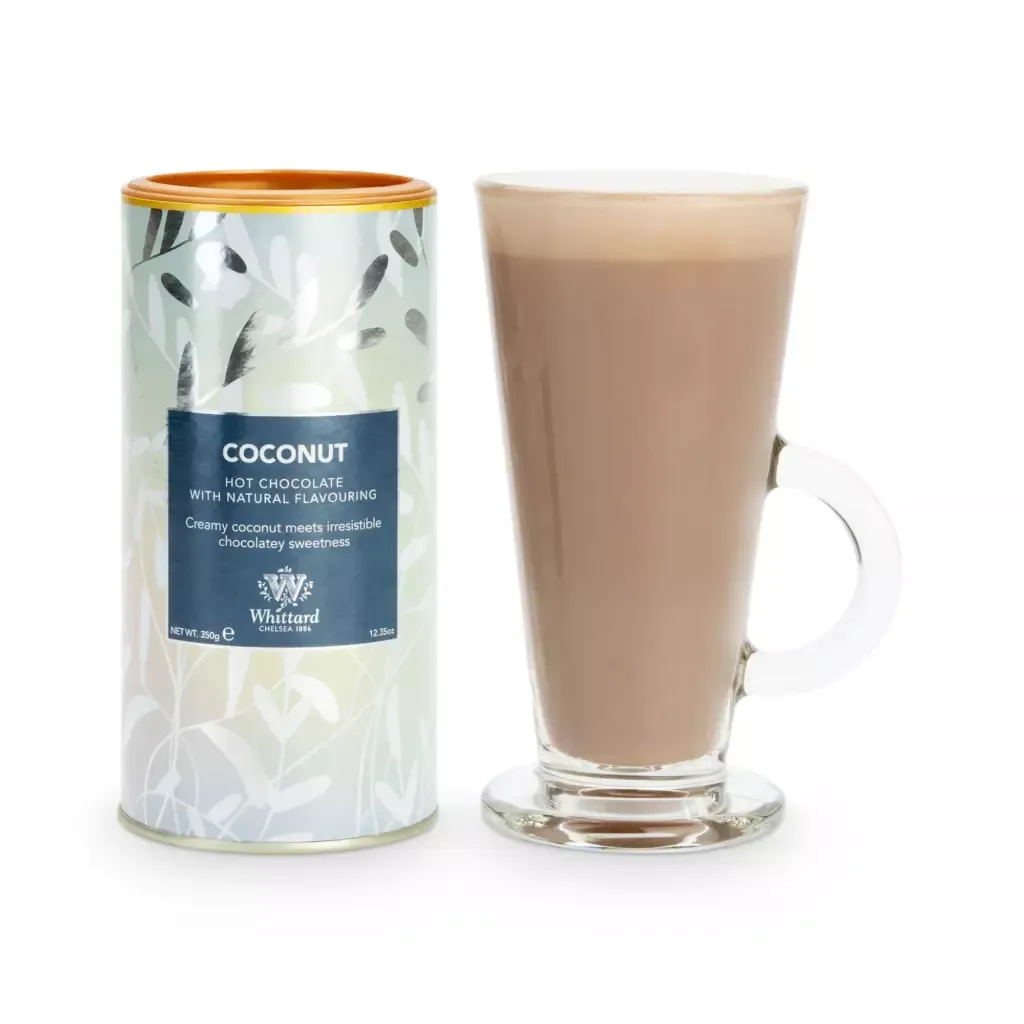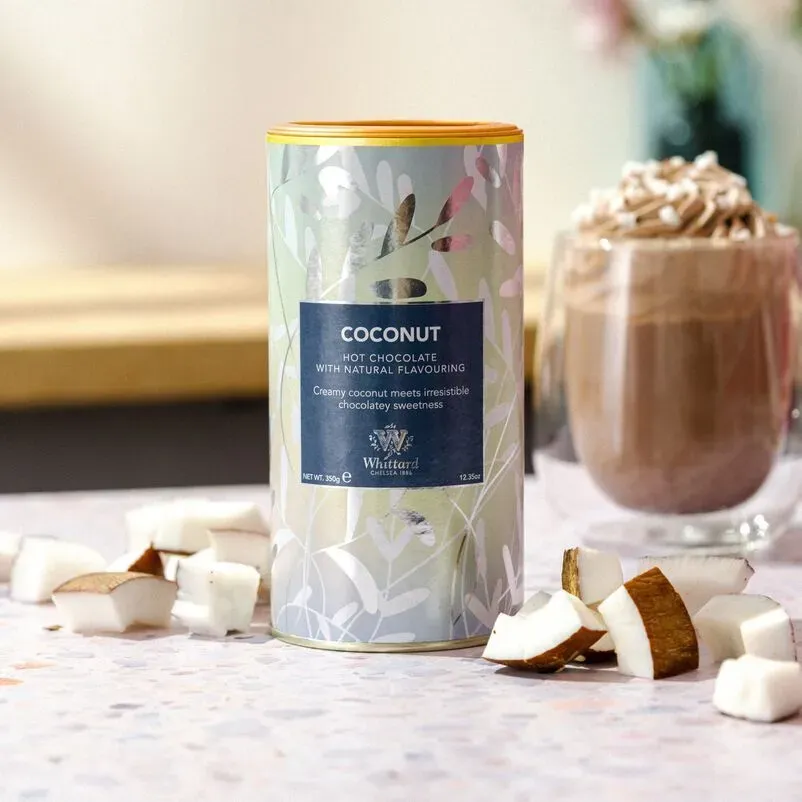 Tómese un momento para desconectarse con esta creación con sabor a coco. La combinación de nuestra base de chocolate caliente con leche deliciosamente dulce con el toque tropical equilibrado del coco crea una taza maravillosamente cremosa para beber.