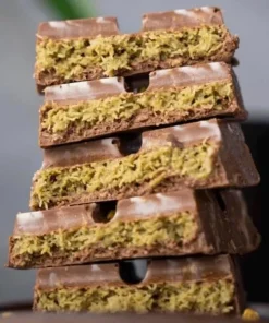 - Perfil de sabor rico: combina la suave cremosidad del chocolate con el sabor terroso y mantecoso de los pistachos y el ligero crujido de la masa knafeh.