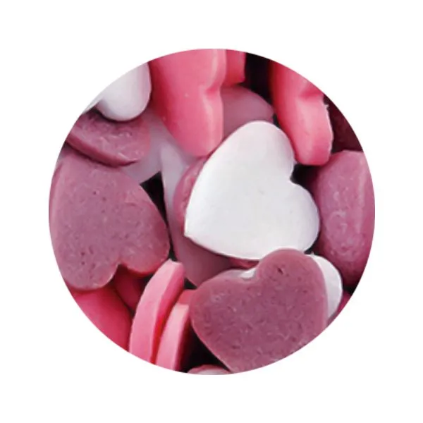 Confeti corazones lila azúcar. Sin gluten. 100% AZO FREE. Caja 600 gr.