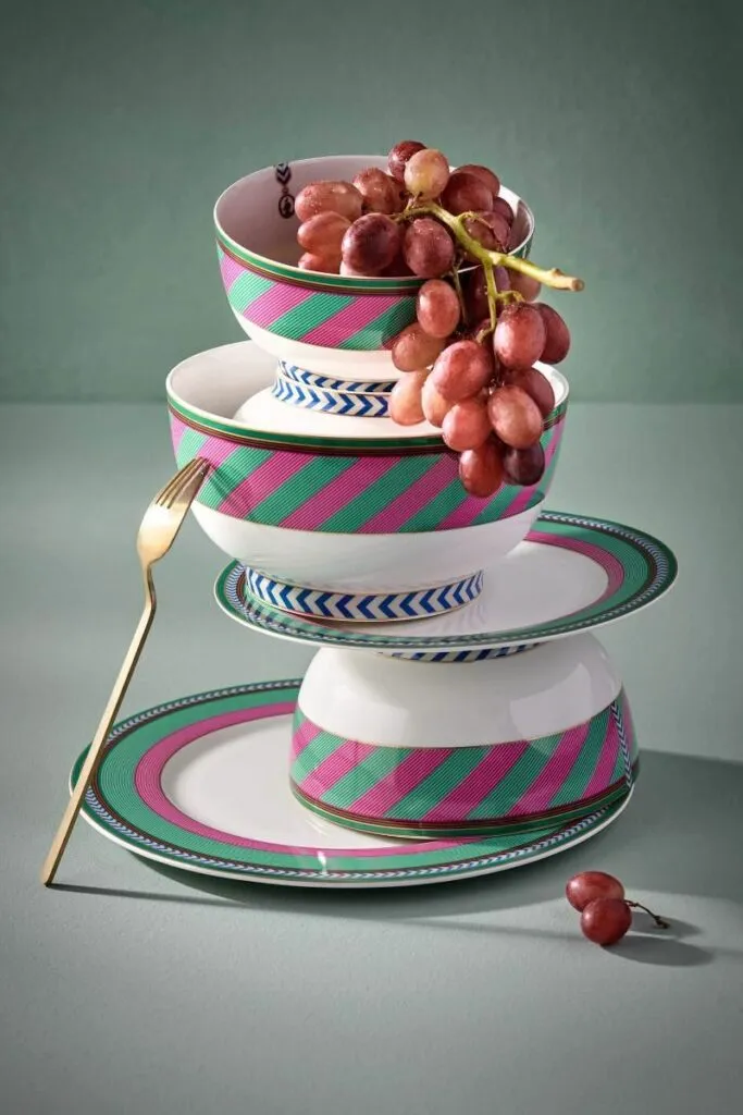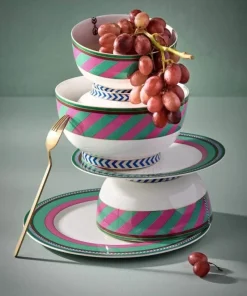 Este precioso cuenco está decorado con rayas rosas y verdes y detalles dorados que lo hacen perfecto para combinar con la colección Pip Chique. La porcelana está hecha de porcelana china, una fina porcelana de alta calidad con un diseño sofisticado. También disponible en medidas: 18 cm y 20,5 cm. Echa un vistazo a la colección completa de Pip Chique Stripes para obtener más inspiración.