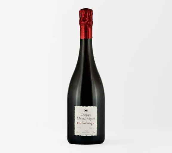 L’aphrodisiaque de David Leclapart es una combinación de tres grandes cuvées: L’Apôtre, L’Astre y L’Artiste, todas ellas elaboradas siguiendo los principios de la biodinámica con certificación Demeter y Ecocert, y sin dosage añadido. Esta cuvée se envejeció durante 11 meses en barricas, manteniendo el estilo directo de David. Las variedades utilizadas en su elaboración son Chardonnay y Pinot Noir, y ofrece una compleja gama de aromas, que van desde el brioche hasta la piel de naranja y las ciruelas verdes. Es un Champagne que requiere atención hasta el último sorbo, característico del estilo distintivo de David Léclapart.