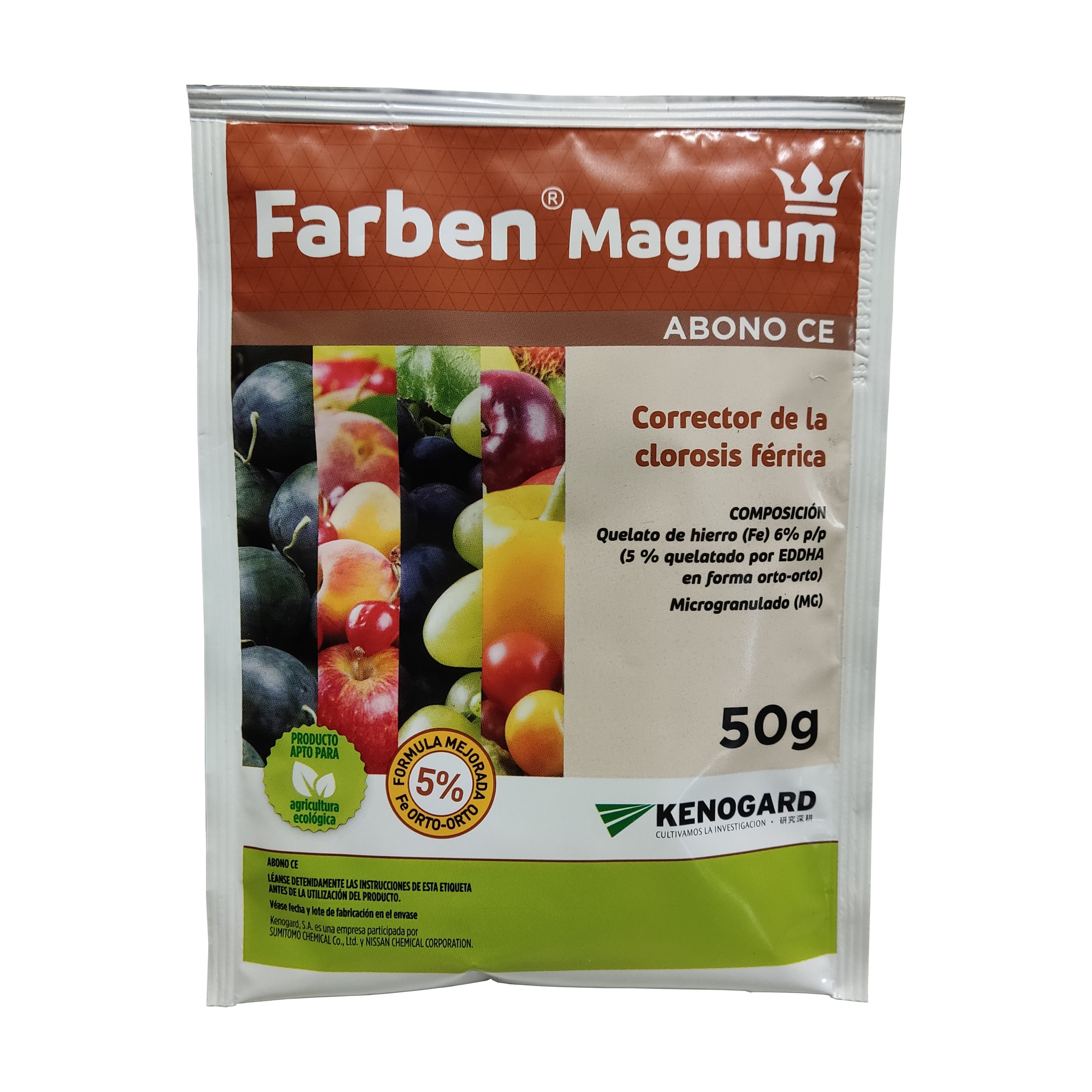 El Farben Magnum quelato de hierro es un producto de alta calidad, específicamente diseñado para corregir deficiencias de hierro en las plantas. Su formulación avanzada en microgránulos, con un 6% de hierro quelatado y un 5% de hierro en forma orto-orto (EDDHAm), garantiza una absorción rápida y eficaz, especialmente en suelos con pH alto o alcalinos. Este quelato de hierro es ideal para su uso en diversos cultivos como cítricos, frutales, ornamentales y hortalizas, ofreciendo una solución completa para evitar la clorosis férrica y otros problemas derivados de la falta de hierro en las plantas.