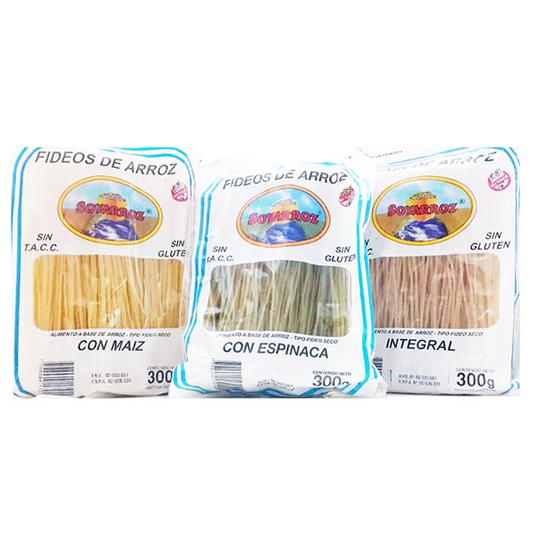 Ingredientes: Harina de arroz, fécula de maíz, agua, ESP: carboximetilcelulosa sódica (INS 466), goma xántica (INS 415). CONS: sorbato de potasio (INS 202). Puede contener soja y sulfitos.