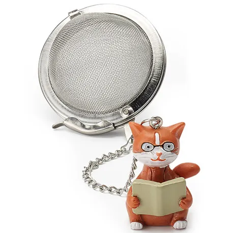 Filtro de bola con cadena y figurita, de acero inoxidable. Pintado a mano, en caja de regalo. Diámetro: 5 cm.