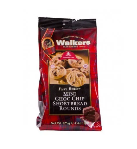 Walker’s Mini Choc Chip Shortbread combina una sabrosa mezcla de galletas de mantequilla desmenuzables y suaves chispas de chocolate. Lleno de 33 mini rondas de galletas de mantequilla con chispas de chocolate del tamaño de un bocado, este formato de bolsa es perfecto para compartir. Sólo los mejores ingredientes se utilizan en las galletas de mantequilla de Walke’rs, que se garantiza que no contienen saborizantes, colorantes ni aditivos artificiales.