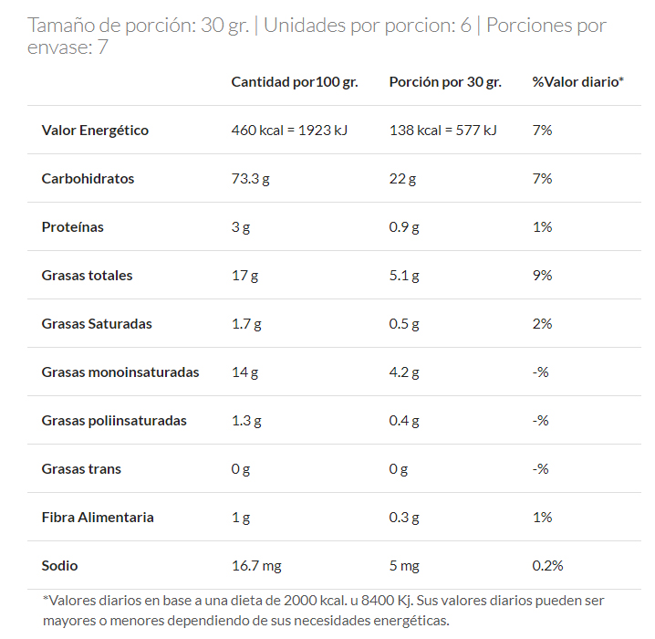 Ingredientes: almidon de maíz, harina de arroz, azucar, aceite vegetal ( aceite de girasol alto oleico), huevo, sal, agentes leudantes ( bicarbonato de sodio – bicarbonato de amonio – fosfato monocalcico), estabilizantes ( goma guar – goma xantica ), colorante ( tartrazina) – emulsionante ( lecitina de soja ), saborizantes ( esencia de limon – esencia de vainilla ), contiene : huevo – soja