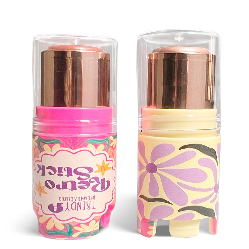 El Iluminador y rubor en barra Retro Stick Trendy combina dos funciones en un práctico formato. Su textura cremosa permite una aplicación fácil y un difuminado perfecto, añadiendo luminosidad y color natural a tu rostro. Ideal para retoques rápidos, aporta un acabado radiante y fresco para todo tipo de piel.