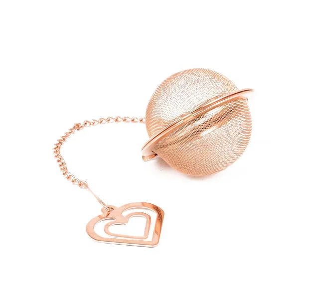 Filtro de bola de 5 cm. de diámetro con un corazón como clip colgante. Precioso color oro rosa