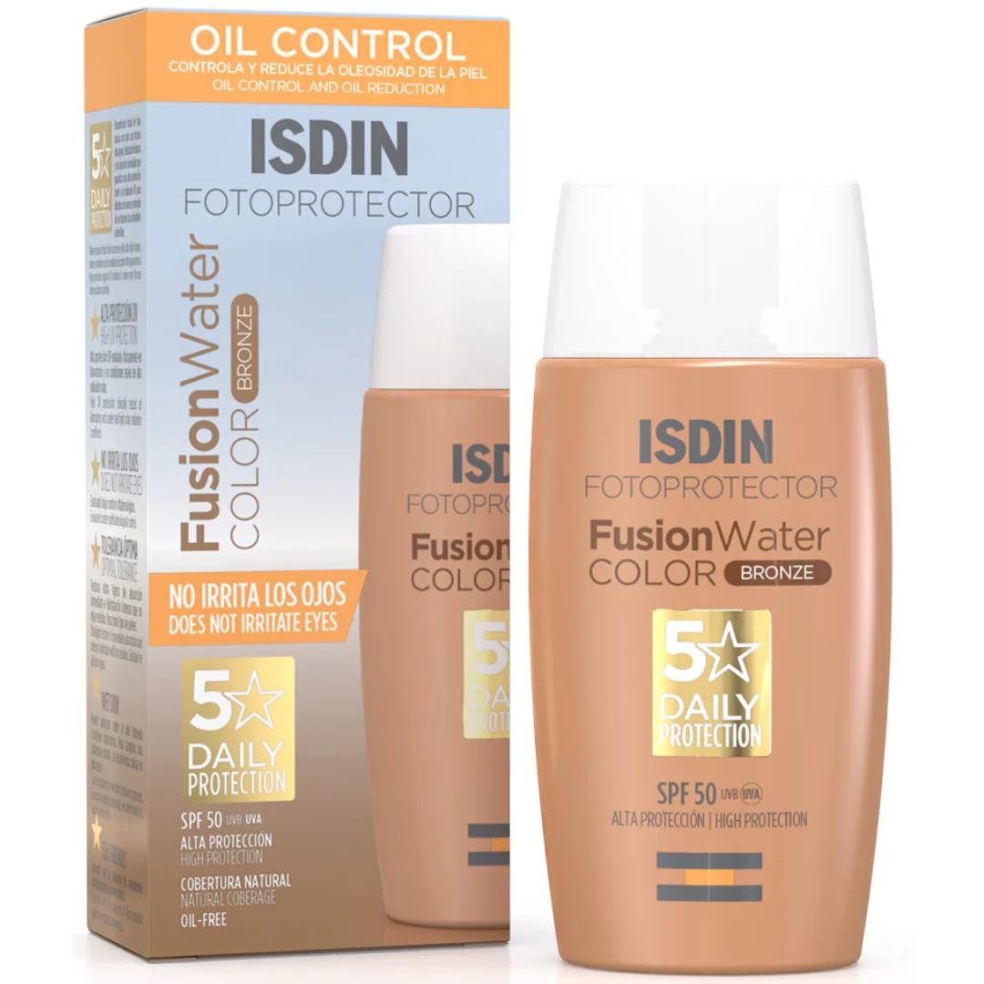 Fusion Water Color Bronze es un protector solar facial con color. Gracias a su fórmula ultraligera, protege tu piel a diario contra los rayos UVB y UVA (SPF 50). Aporta una cobertura natural que disimula imperfecciones, unifica el tono y proporciona un efecto buena cara.
