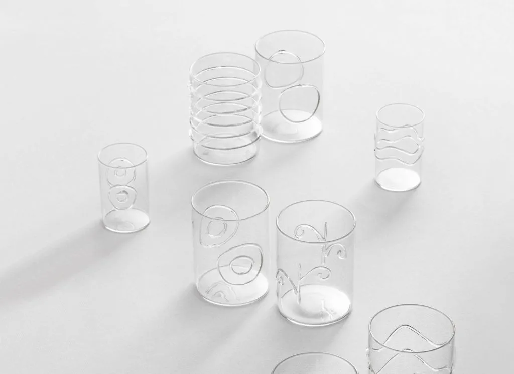 Maravilloso juego de café expreso. Diseño de Forti E Di Loreto compuesto por 6 tazas fabricadas en borosilicato hecho a mano y moldeado por la luz. Apto para el lavavajillas.