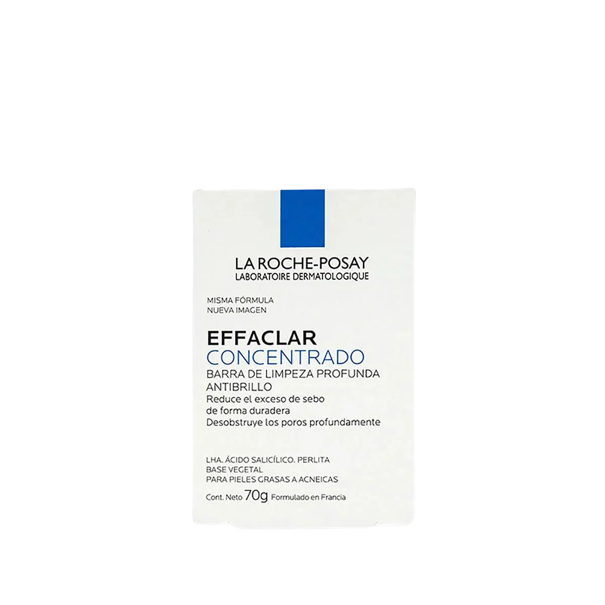 EFFACLAR BARRA CONCENTRADA es un jabón facial en barra que desobstruye los poros con una precisa y dirigida exfoliación, ayuda a reducir el exceso de brillo e impurezas en la piel al combatir la sobreproducción de sebo.
