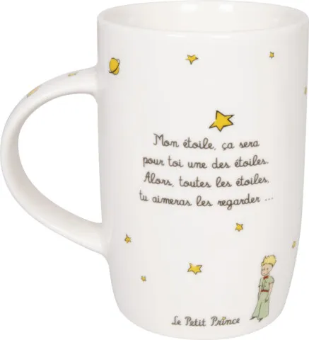 La historia amorosa del Principito, escrita por el autor francés «Antoine de Saint-Exupéry», se interpreta como un cuento de hadas moderno y se considera una súplica por la humanidad y la amistad. Esta taza con una cita es sobre las estrellas. Las estrellas y la observación de ellas tienen un significado diferente para todos. Esta valiosa historia del principito ahora ha sido inmortalizada en una nueva forma de taza de porcelana de hueso.