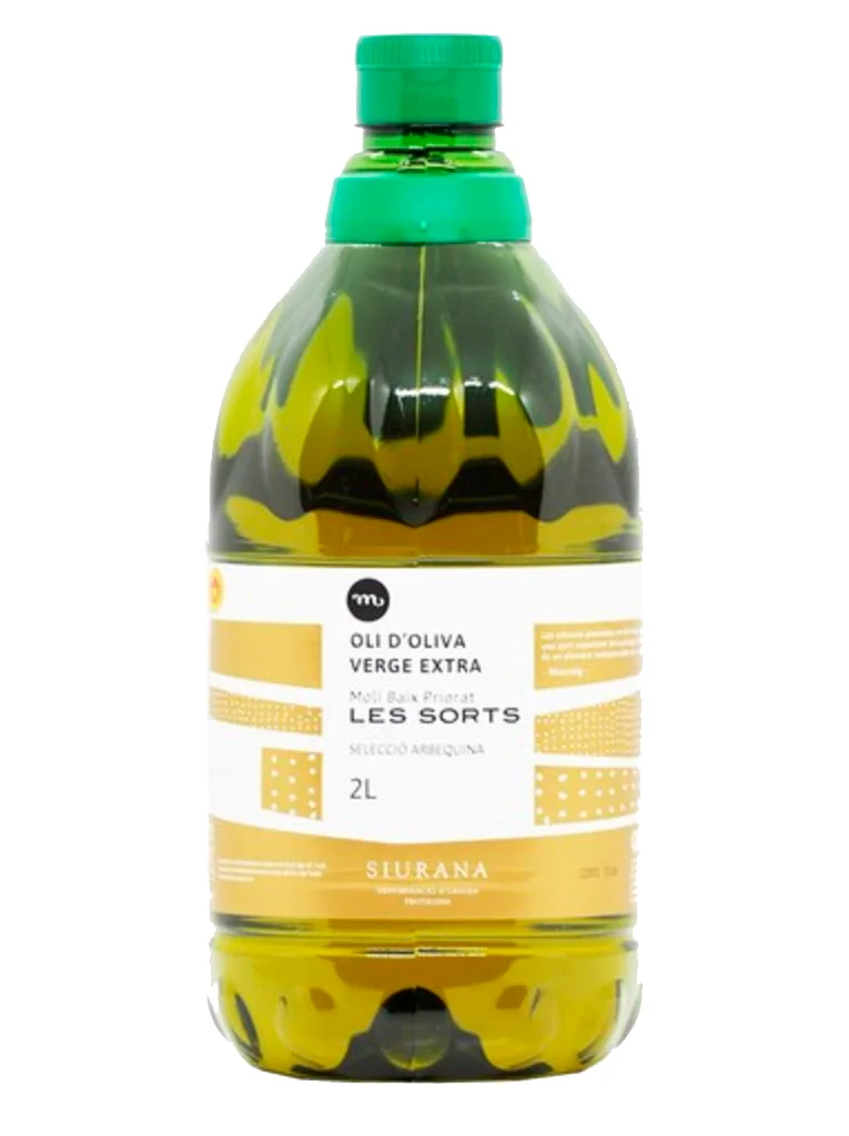 Les Sorts es un aceite de oliva virgen extra en formato de 2 litros producido en la región de Siurana, en la zona del Priorat. Está hecho de aceitunas de la variedad arbequina, que le dan un sabor suave y afrutado. El aceite Les Sorts se puede utilizar para aderezar ensaladas y otros platos, y es muy valorado por su sabor y su aroma delicado.