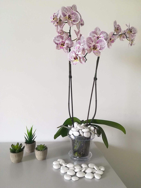 Las piedras decorativas blancas se pueden usar para cubrir la superficie del jarrón o se pueden colocar alrededor del jarrón como una composición.