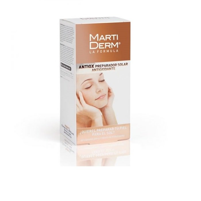 Martiderm Antiox son cápsulas, de uso diario para todo tipo de pieles, que ayuda a mejorar las defensas naturales que produce la piel frente a la radiación ultravioleta a la que se somete con la exposición al sol.