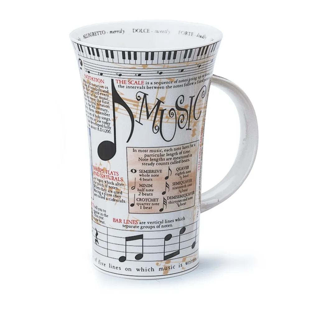 Aprenda todo sobre los signos y símbolos de la ‘Música’ con esta taza educativa de Jackie Reynolds. Esto presenta la estructura y secuencia de notas, así como varias instrucciones dinámicas y diseños de pentagrama.