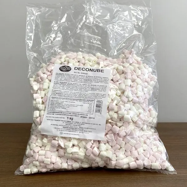 Las nubes mini rosa blanco en bolsa de 1 kg se producen bajo estrictos controles de calidad para asegurar su frescura y consistencia. Cada bolsa contiene nubes suaves y esponjosas, elaboradas con ingredientes de alta calidad, garantizando un producto seguro y delicioso. El empaque protege las nubes de la humedad y otros factores ambientales, manteniéndolas en óptimas condiciones hasta su uso. La calidad de las nubes mini asegura que cada bocado sea una experiencia dulce y satisfactoria.