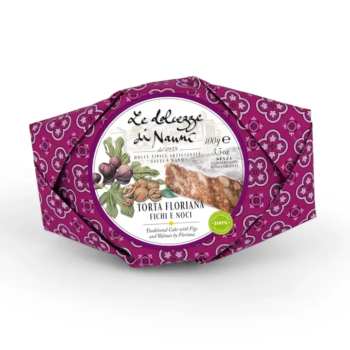 PASTEL FLORIAN HIGOS Y NUECES 100gr Deliciosos pastelitos cocinados en una olla de cobre como antes y dejados reposar fríos. Un proceso similar al de hacer panforte con diferentes combinaciones de frutas secas y frutas confitadas: naranja y avellana, higos y nueces, higos, almendras y cedro. Para una armonía de sabores embriagadores e inconfundibles.