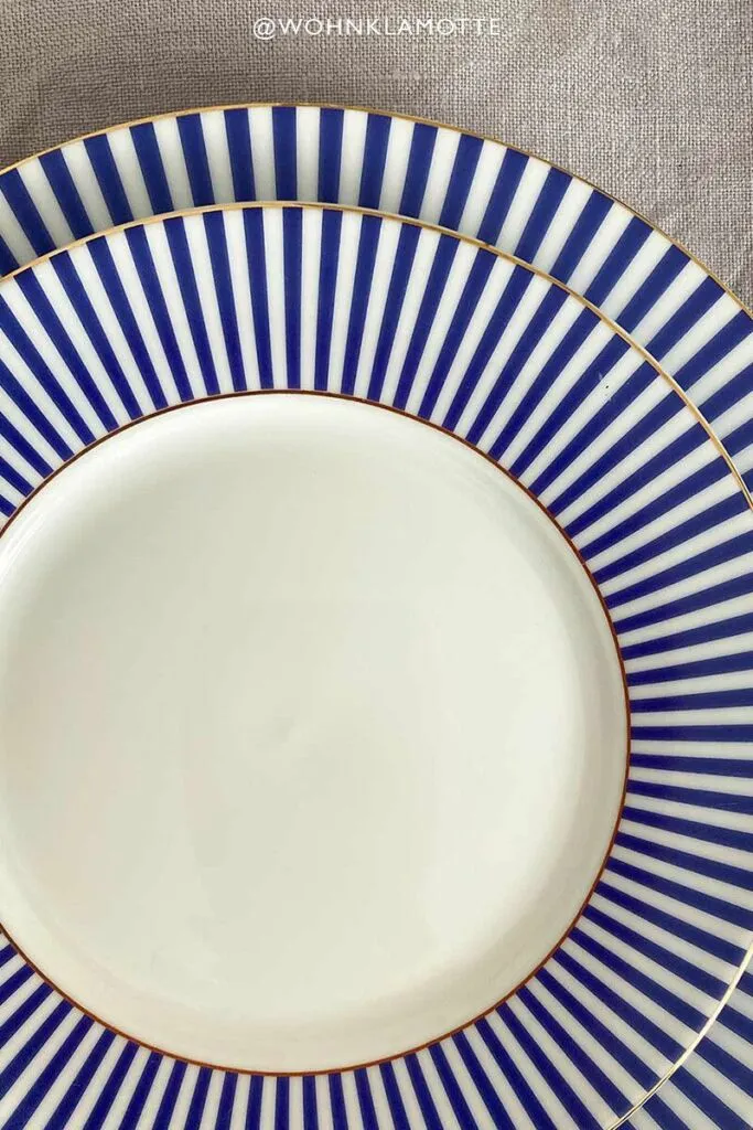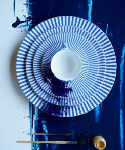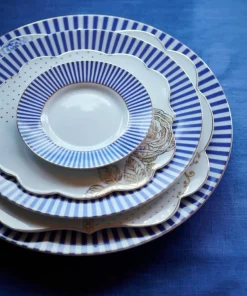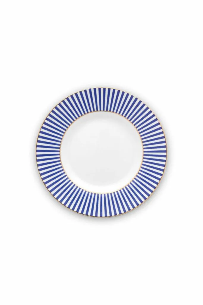 Parte de nuestra colección Royal Stripes, el plato Royal Stripes. Este plato tiene un diseño de rayas con fondo blanco en el centro. El plato está acabado con detalles dorados y es perfecto para combinar con el resto de platos de esta colección..