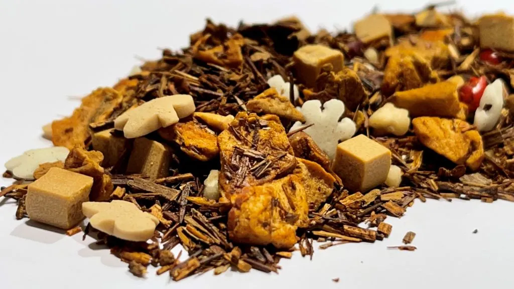 INGREDIENTES: Rooibos, caramelo, canela, manzana, crocanti, pimienta rosa y aroma natural.