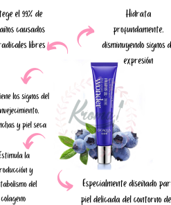 • Aclara las ojeras, disminuye bolsas y ojeras y mejora la circulación del contorno