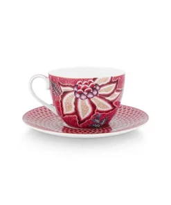 SET 2 TAZA Y PLATO 280 ML. FLOWER FESTIVAL ROSA OSCURO «PIP STUDIO»