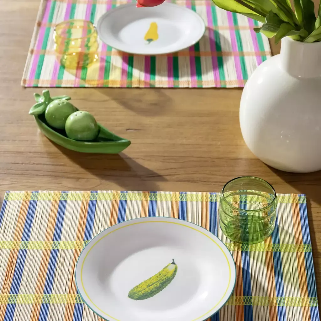 Platos de estilo vintage con un bonito estampado. El estampado vegetal y los detalles de color crean un aspecto alegre y sofisticado.