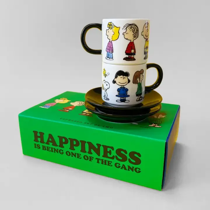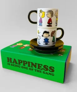 Con el elenco de personajes de Peanuts, incluido el perro de dibujos animados favorito de todos, Snoopy, hemos creado una gama de artículos para el hogar súper lindos y muy actuales Vegan Fine China | En caja de regalo | Vaso de 60 ml: 5 cm (alto) x 5 cm (diámetro) | Plato: 9 cm (diámetro) | Apto para lavavajillas y microondas