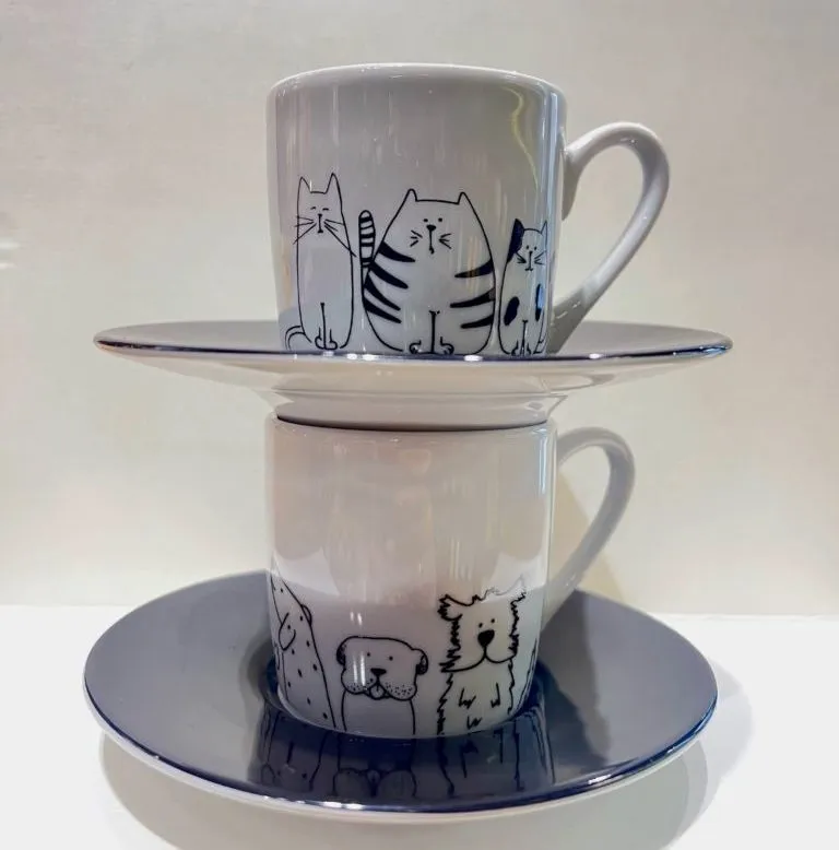 Set espresso Funny Cats & dogs 85 ml. (2 tazas y 2 platos) «KÖNITZ»