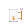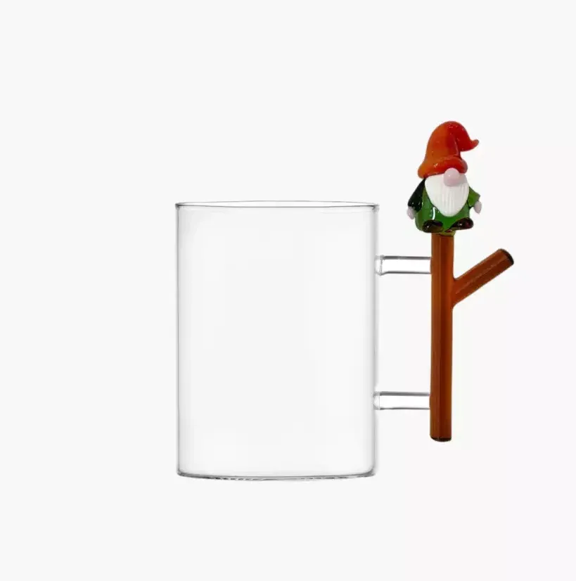 Precioso mug de borosilicato artesanal fabricado por Ichendorf Milano con espectacular diseño de Alessandra Baldereschi, con un Elfo o Gnomo del bosque en el asa.