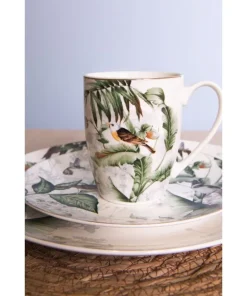 Taza de porcelana de 360 ml. de capacidad ilustrada con pájaros en la naturaleza.