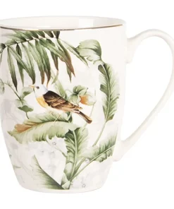 Taza de porcelana de 360 ml. de capacidad ilustrada con pájaros en la naturaleza.