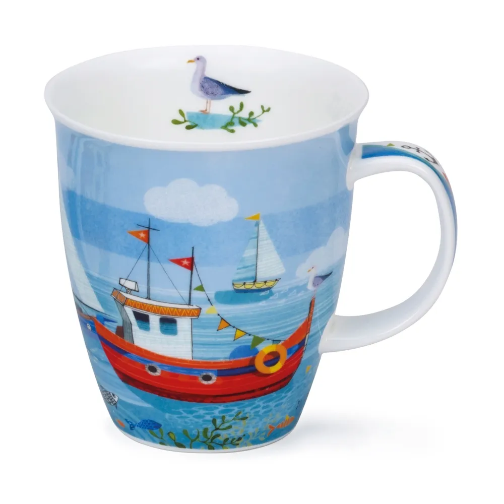 Lynn Horrabin ha diseñado un hermoso y colorido homenaje a la costa en esta colección. Una variedad de colores da vida a las modernas ilustraciones, incorporando todo lo que el mar ofrece a lo largo de la orilla. Una serie de barcos pesqueros flotan sobre el agua mientras coloridos bancos de peces se escabullen debajo.