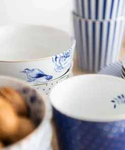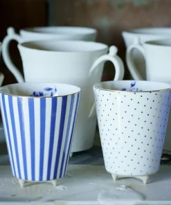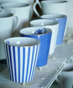 Parte de la colección Royal Stripes, la taza a rayas pequeña. Dentro de esta taza encontrarás flores pintadas de azul que le dan un toque elegante a esta taza. El borde de este está rematado con una línea dorada. Mezcle y combine esta taza con otros artículos de la colección Royal stripes o eche un vistazo a nuestra colección Royal White o Royal Multi para obtener un resultado sorprendente.