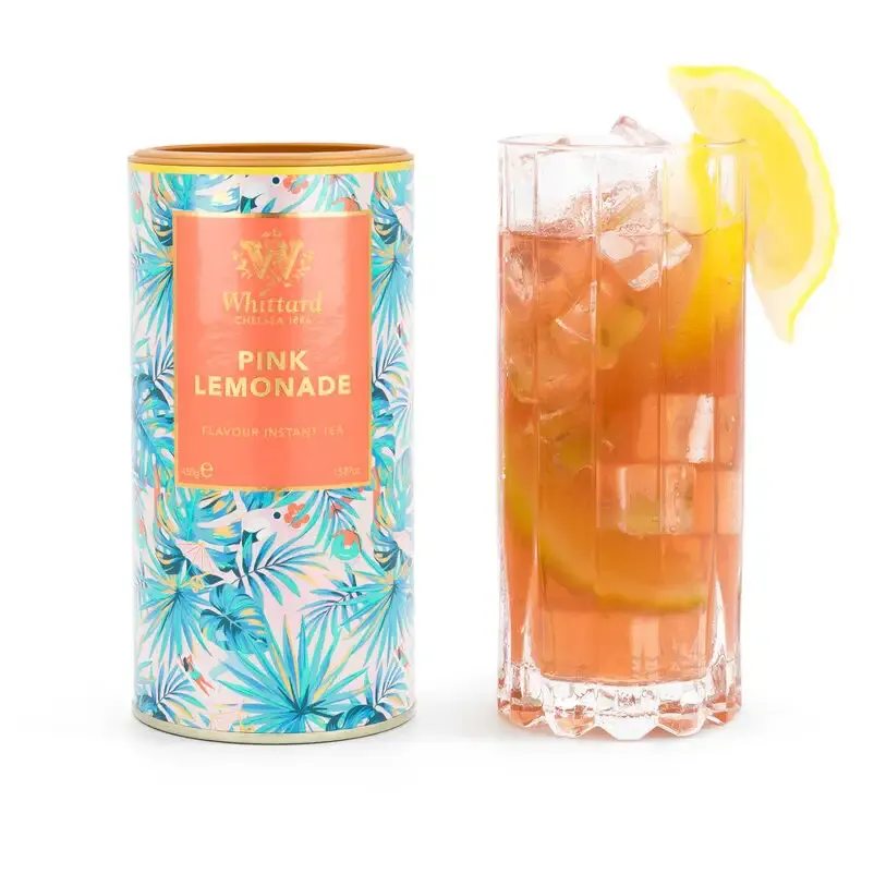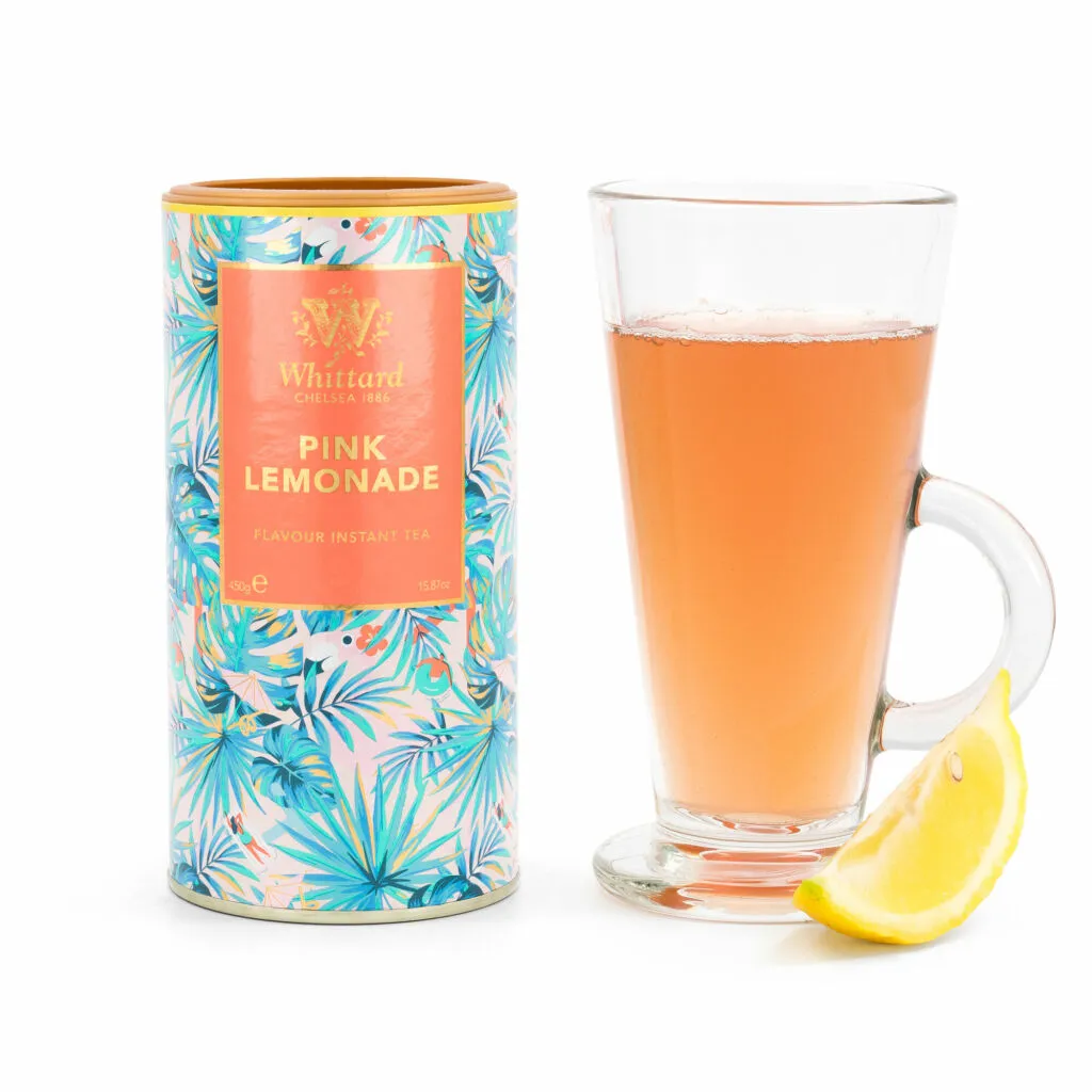 Dulce, ácido y con un delicioso tono rosado, nuestro té instantáneo Pink Lemonade es una versión del clásico del verano; nos gusta más una jarra llena de hielo y rodajas de limón.