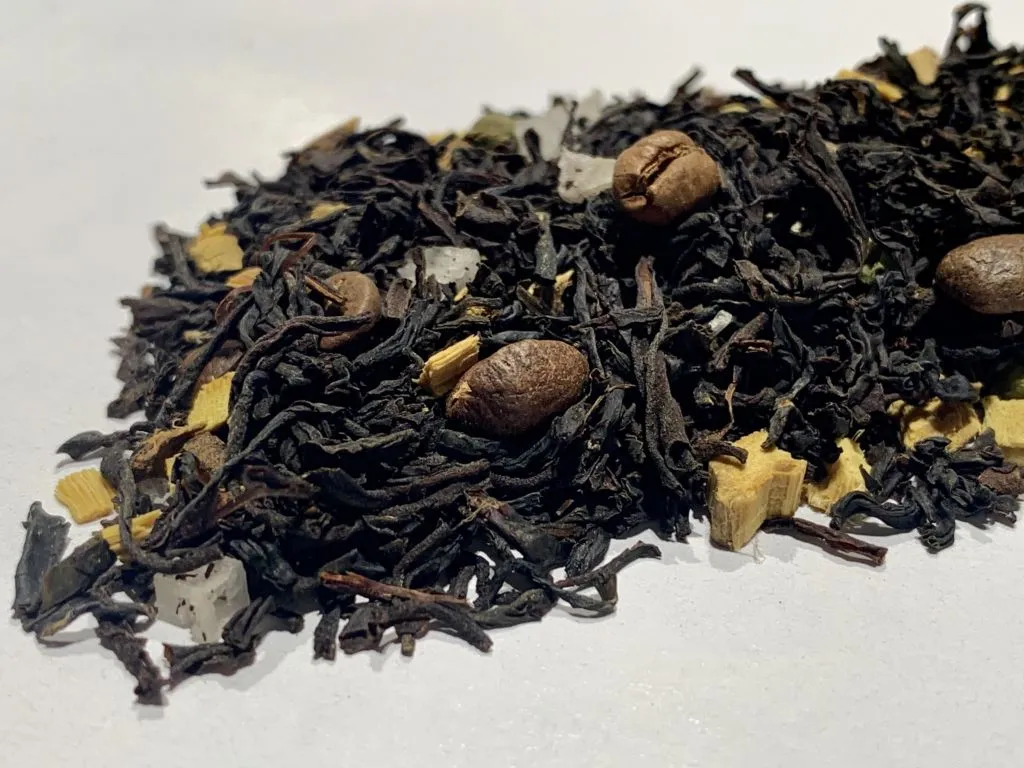 INGREDIENTES: Té negro, granos de café, regaliz, sal marina y pimienta verde.