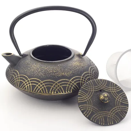 Tetera japonesa negra y dorada de hierro colado con el interior esmaltado, de 0,85 L. Incluye filtro de acero inoxidable.