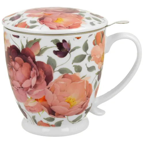 Taza de porcelana fina, con tapa, de 0,50 l. Incluye filtro de acero inoxidable, en caja de regalo.